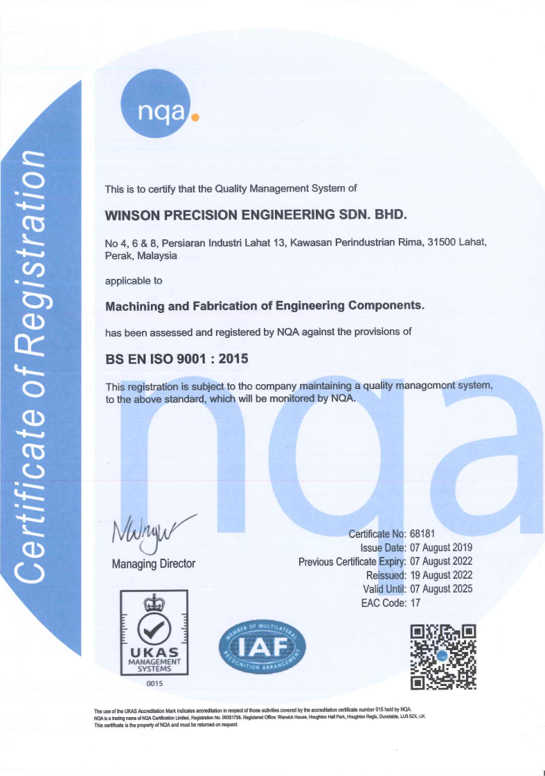WINSON PRECISION ENGINEERING SDN BHD provides full solution of high precision fabrication and machining services to a vast variety of industries.With over 20 years of engineering experiences and ISO 9001 certified,our teams are capable to deliver unique and high quality product /solution to our customer. Our current facilities of about 16,000 sq ft,and equipped with the latest large capacity DOUBLE COLUMN CNC machine and advance equipment,enable us to provide total solution to our customer.